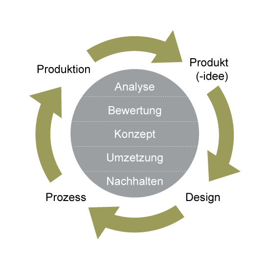 Wir hinterfragen alle bestehenden Prozesse und Produkte hinsichtlich ihrer Ressourceneffizienz, erfassen und bewerten gemeinsam mit den betroffenen Mitarbeitern